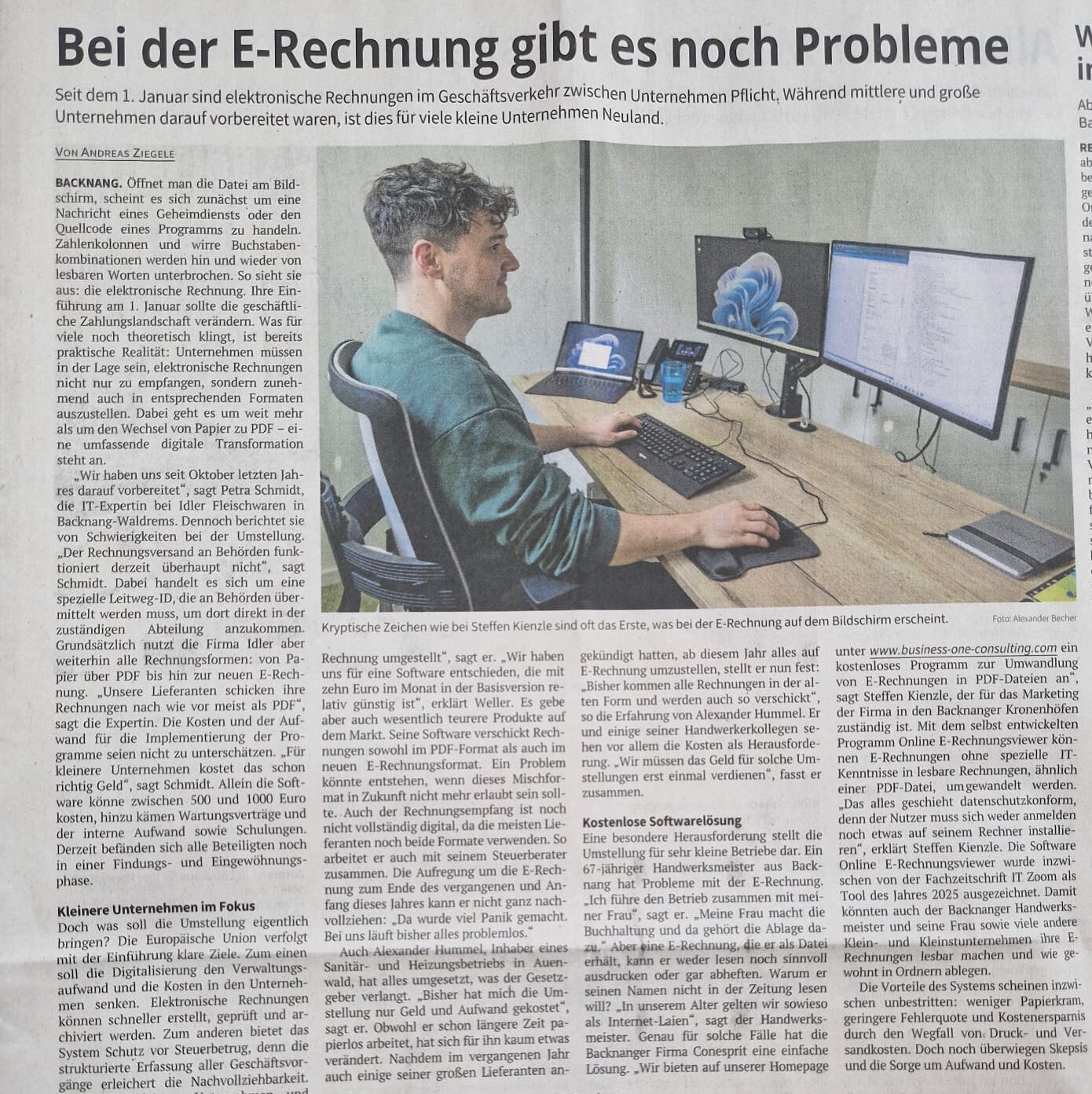 In a major article on the introduction of e-invoicing, the Backnanger Kreiszeitung (BKZ) newspaper reports on our online viewer and how it helps small and medium-sized businesses. Anyone can use it to read their e-invoices free of charge!